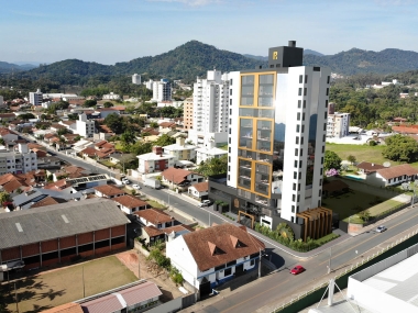 à universidade. Com fácil acesso à rodovia BR-470, o edifício está posicionado em